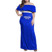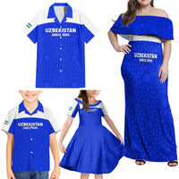 Custom Uzbekistan Football Family Matching Off Shoulder Maxi Dress and Hawaiian Shirt 2024 Go Champions Uzbek Pattern