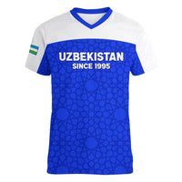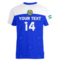 Custom Uzbekistan Football Women V Neck T Shirt 2024 Go Champions Uzbek Pattern LT14
