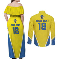 Custom West Knights of Yorkshire Couples Matching Off Shoulder Maxi Dress and Long Sleeve Button Shirt Skate Hard Hit Harder Yellow Version