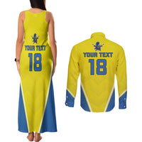 Custom West Knights of Yorkshire Couples Matching Tank Maxi Dress and Long Sleeve Button Shirt Skate Hard Hit Harder Yellow Version