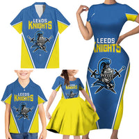 Custom West Knights of Yorkshire Family Matching Short Sleeve Bodycon Dress and Hawaiian Shirt Skate Hard Hit Harder Blue Version
