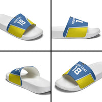 Ready to own your look? Order your pair of Custom West Knights of Yorkshire Slide Sandals Skate Hard Hit Harder Blue Version today and walk in confidence.