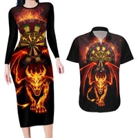 Cymru Am Byth Wales Darts Couples Matching Long Sleeve Bodycon Dress and Hawaiian Shirt Go Welsh Flame Style LT14