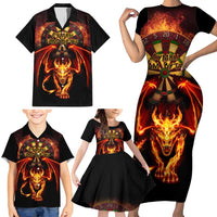 Cymru Am Byth Wales Darts Family Matching Short Sleeve Bodycon Dress and Hawaiian Shirt Go Welsh Flame Style