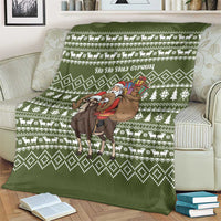 Cyprus Christmas Blanket with Santa Riding Ram Ho Ho Holy Cyprus Text and Green Holiday TS04