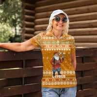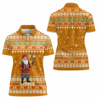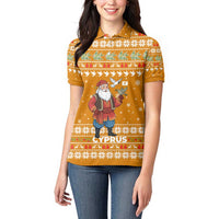 Cyprus Christmas Women Polo Shirt with Santa Holding Doves Olive Branch Snowflakes and Holiday