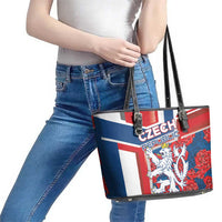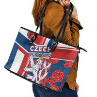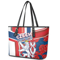 Czech Republic Leather Tote Bag Czechia Lion Rosa Pattern