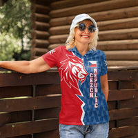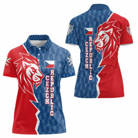 Czech Republic Women Polo Shirt with Red Blue Modern Lion Design and Geometric Flag