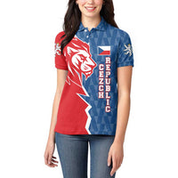 Czech Republic Women Polo Shirt with Red Blue Modern Lion Design and Geometric Flag TS04