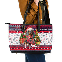 Dachshund Merry Woofmas Leather Tote Bag Christmas Dog Art Style