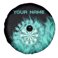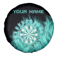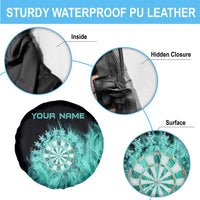 Darts Board Spare Tire Cover with Flaming Green Smoke and Crest Emblem on Black Gradient Background