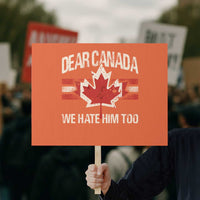 Dear Canada We Hate Him Too Protest Sign Vintage Maple Leaf