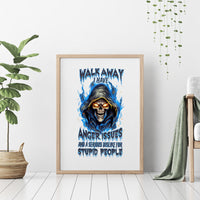 Death Skull Canvas Wall Art Walk Away I Have Anger Issues And Dislike For Stupod People DT01