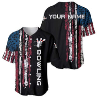 Distressed American Flag Baseball Jersey with Bowling Pins and Ball Vertical Stripe Design TS04