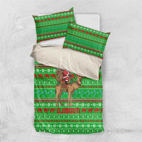Djibouti Christmas Bedding Set with Santa Riding Camel Palm Trees Red Camel