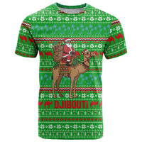Djibouti Christmas T Shirt with Santa Riding Camel Palm Trees Red Camel TS04