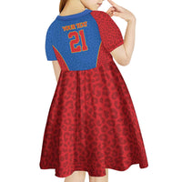 DR Congo Football Custom Kid Short Sleeve Dress Blue Leopard Skin Pattern LT9