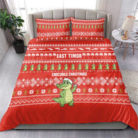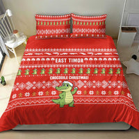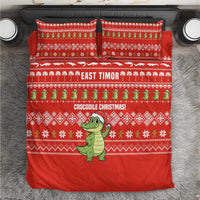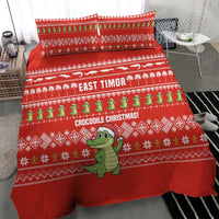 East Timor Christmas Bedding Set with Santa Crocodile Gingerbread Palm Trees and Red Holiday TS04