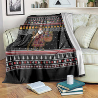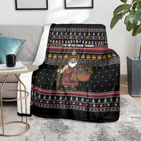 East Timor Christmas Blanket with Santa in Traditional Robe Gift Basket Ho Ho Ho Text and Black Festive