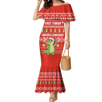 East Timor Christmas Mermaid Dress with Santa Crocodile Gingerbread Palm Trees and Red Holiday
