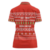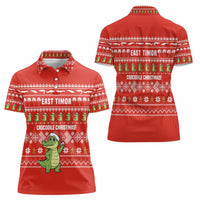 East Timor Christmas Women Polo Shirt with Santa Crocodile Gingerbread Palm Trees and Red Holiday