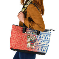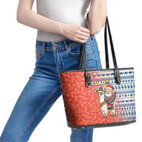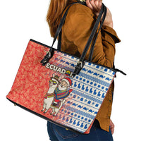 Ecuador Christmas Leather Tote Bag with Santa Riding Llama Traditional Patterns and Rose Design