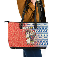 Ecuador Christmas Leather Tote Bag with Santa Riding Llama Traditional Patterns and Rose Design TS04