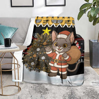 Egypt Christmas Blanket with Santa Cat Sleigh Reindeer Christmas Tree and Ancient Hieroglyphic TS04