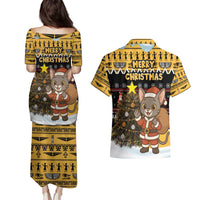 Egypt Christmas Couples Matching Puletasi and Hawaiian Shirt with Santa Cat Sleigh Reindeer Christmas Tree and Ancient Hieroglyphic