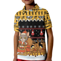 Egypt Christmas Kid Polo Shirt with Santa Cat Sleigh Reindeer Christmas Tree and Ancient Hieroglyphic TS04