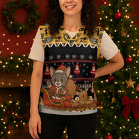 Egypt Christmas Knitted V-Neck Vest with Santa Cat Sleigh Reindeer Christmas Tree and Ancient Hieroglyphic TS04