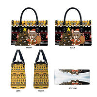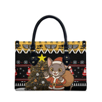 Egypt Christmas Leather Bag with Santa Cat Sleigh Reindeer Christmas Tree and Ancient Hieroglyphic TS04