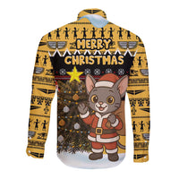 Egypt Christmas Long Sleeve Button Shirt with Santa Cat Sleigh Reindeer Christmas Tree and Ancient Hieroglyphic TS04