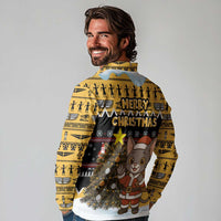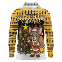 Egypt Christmas Long Sleeve Polo Shirt with Santa Cat Sleigh Reindeer Christmas Tree and Ancient Hieroglyphic