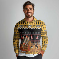 Egypt Christmas Long Sleeve Polo Shirt with Santa Cat Sleigh Reindeer Christmas Tree and Ancient Hieroglyphic TS04