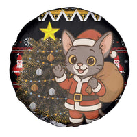 Egypt Christmas Spare Tire Cover with Santa Cat Sleigh Reindeer Christmas Tree and Ancient Hieroglyphic