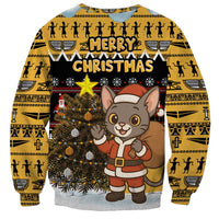 Egypt Christmas Sweatshirt with Santa Cat Sleigh Reindeer Christmas Tree and Ancient Hieroglyphic