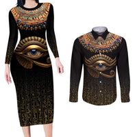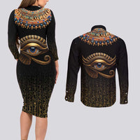 Egypt Eyes Of Horus Couples Matching Long Sleeve Bodycon Dress and Long Sleeve Button Shirt with Egyptian Hieroglyphs