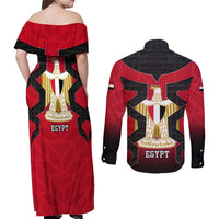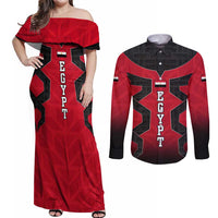 Egypt Flag Emblem Couples Matching Off Shoulder Maxi Dress and Long Sleeve Button Shirt with Red Black Bold Spirit