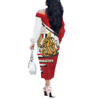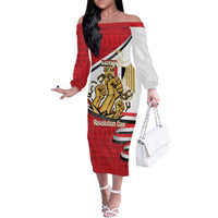 Egypt Revolution Day Off The Shoulder Long Sleeve Dress Coat of Arms Egyptian Pattern