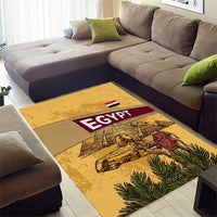 Egyptian Pyramids and Anubis Area Rug with Camel Caravan Desert