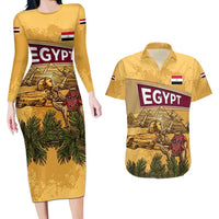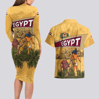 Egyptian Pyramids and Anubis Couples Matching Long Sleeve Bodycon Dress and Hawaiian Shirt with Camel Caravan Desert TS04