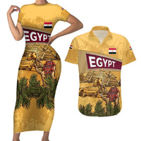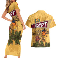 Egyptian Pyramids and Anubis Couples Matching Short Sleeve Bodycon Dress and Hawaiian Shirt with Camel Caravan Desert TS04