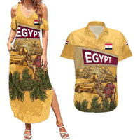 Egyptian Pyramids and Anubis Couples Matching Summer Maxi Dress and Hawaiian Shirt with Camel Caravan Desert TS04