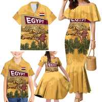 Egyptian Pyramids and Anubis Family Matching Mermaid Dress and Hawaiian Shirt with Camel Caravan Desert