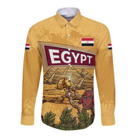 Egyptian Pyramids and Anubis Long Sleeve Button Shirt with Camel Caravan Desert