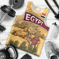 Egyptian Pyramids and Anubis Men Tank Top with Camel Caravan Desert