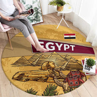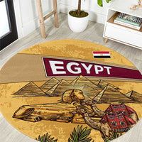 Egyptian Pyramids and Anubis Round Carpet with Camel Caravan Desert