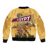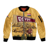 Egyptian Pyramids and Anubis Sleeve Zip Bomber Jacket with Camel Caravan Desert
