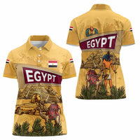 Egyptian Pyramids and Anubis Women Polo Shirt with Camel Caravan Desert